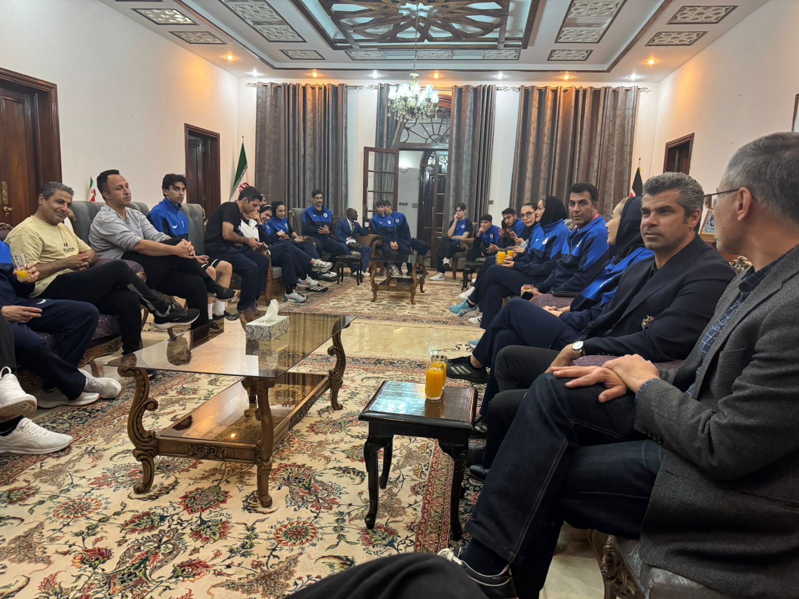پس از پایان مسابقات، جناب آقای دکتر علی غلامپور، سفیر کشورمان در کنیا در ضیافت شامی در محل سفارت جمهوری اسلامی ایران در نایروبی، از هادی ساعی - قهرمان پیشین جهان و المپیک و رئیس فعلی فدراسیون تکواندو ایران - به همراه کلیه اعضای تیم ملی امید زیر ۲۱ سال مردان و زنان کشورمان پذیرایی کرد.