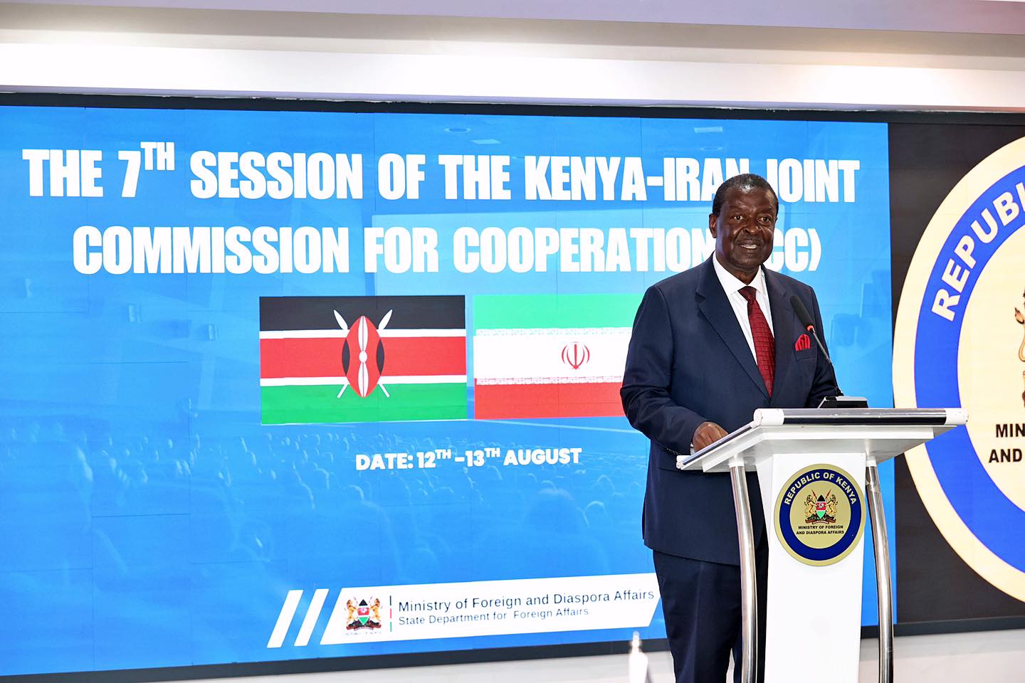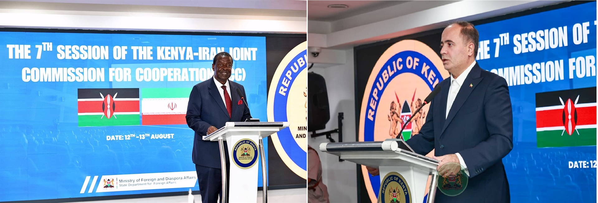 هفتمین نشست کمیسیون مشترک همکاریهای ایران و کنیا در تاریخ 22-21 مردادماه 1404 به میزبانی کنیا در نایروبی برگزار گردید. در این نشست که به امضای 7 یادداشت تفاهم همکاری منتج شد، ریاست هیئت جمهوری اسلامی ایران برعهده جناب آقای غلامرضا نوری وزیر محترم جهاد کشاورزی و ریاست هیئت جمهوری کنیا برعهده جناب آقای موسالیا موداوادی وزیر نخست کابینه و وزیر امور خارجه و دیاسپورا بود.